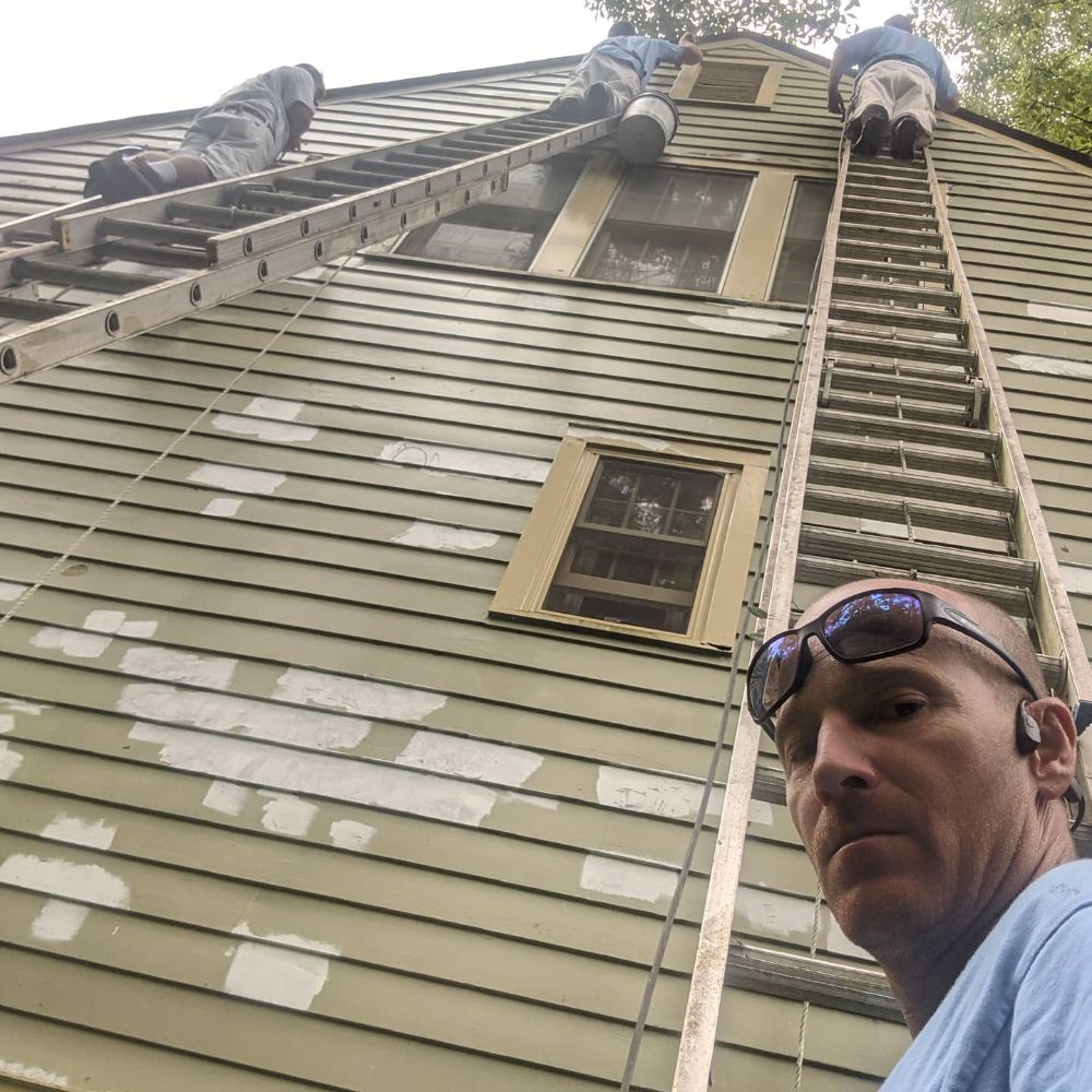 Power washed house to remove any dirt and mildew to ensure proper adhesion. Caulked any cracks or joints to keep moisture out and protect the home. Painted body and trim with Sherwin Williams Resilience. Painted garage doors using Sherwin Williams Resilience. Replaced a couple boards on the deck, and stained deck.