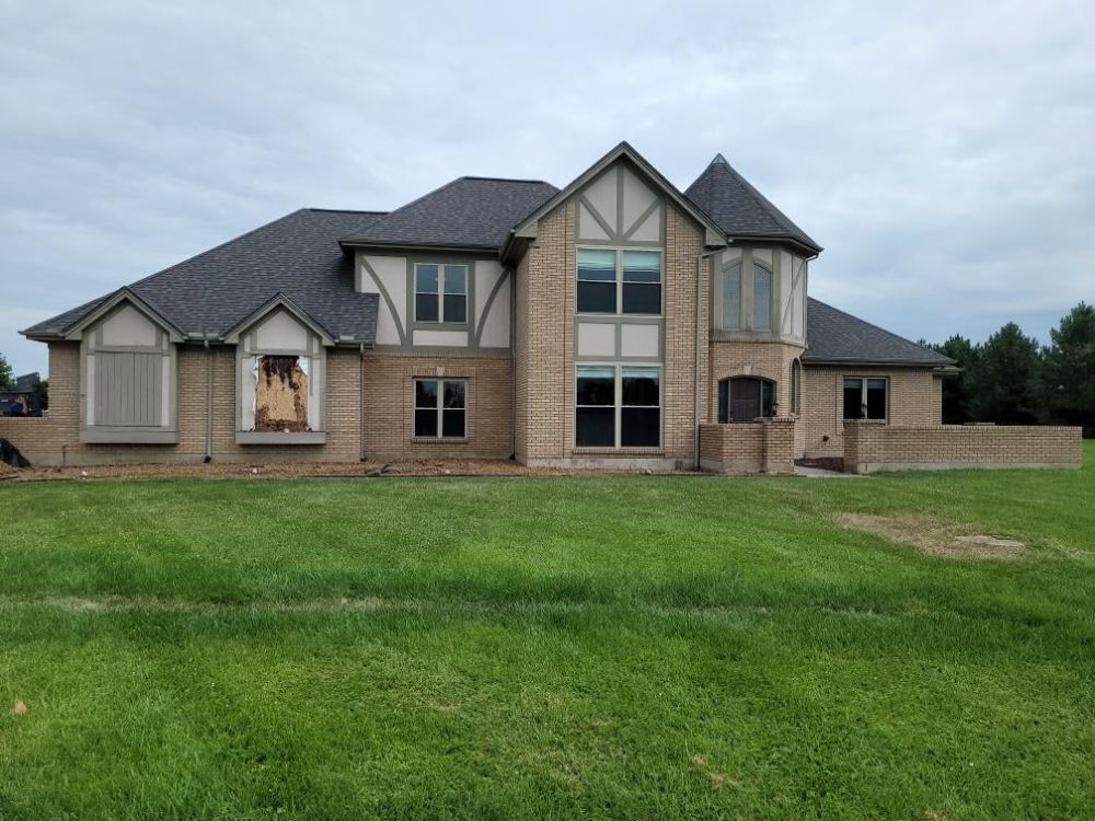 Power washed house to remove any dirt and mildew to ensure proper adhesion. Caulked any cracks or joints to keep moisture out and protect home. Painted panels of house using Sherwin Williams Super Paint. Painted trim using Sherwin Williams Super Paint. Painted garage doors using Sherwin Williams Resilience.