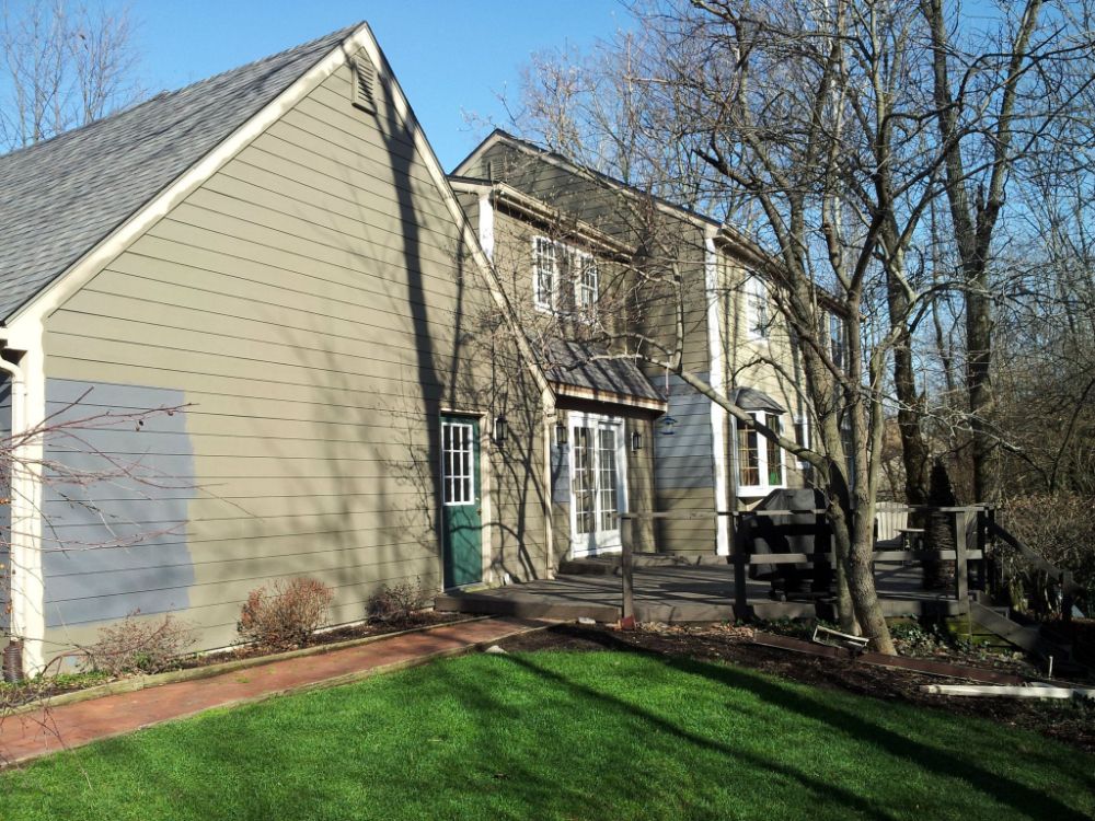 Power washed house to remove any dirt and mildew to ensure proper adhesion. Caulked any cracks or joints to keep moisture out and protect home. Painted siding of house using Sherwin Williams Super Paint. Painted trim using Sherwin Williams Super Paint. Painted garage doors using Sherwin Williams Resilience.